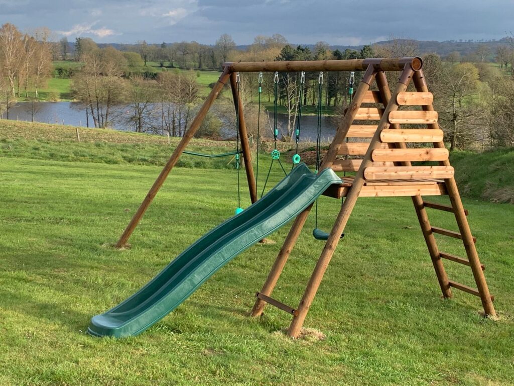 Découvrez l’extérieur verdoyant du Gîte de la Bouguerie, surplombant le lac de la Dathée, un havre de paix propice à la détente et aux activités de plein air (randonnées, base de voile, pêche, golf, voie verte).